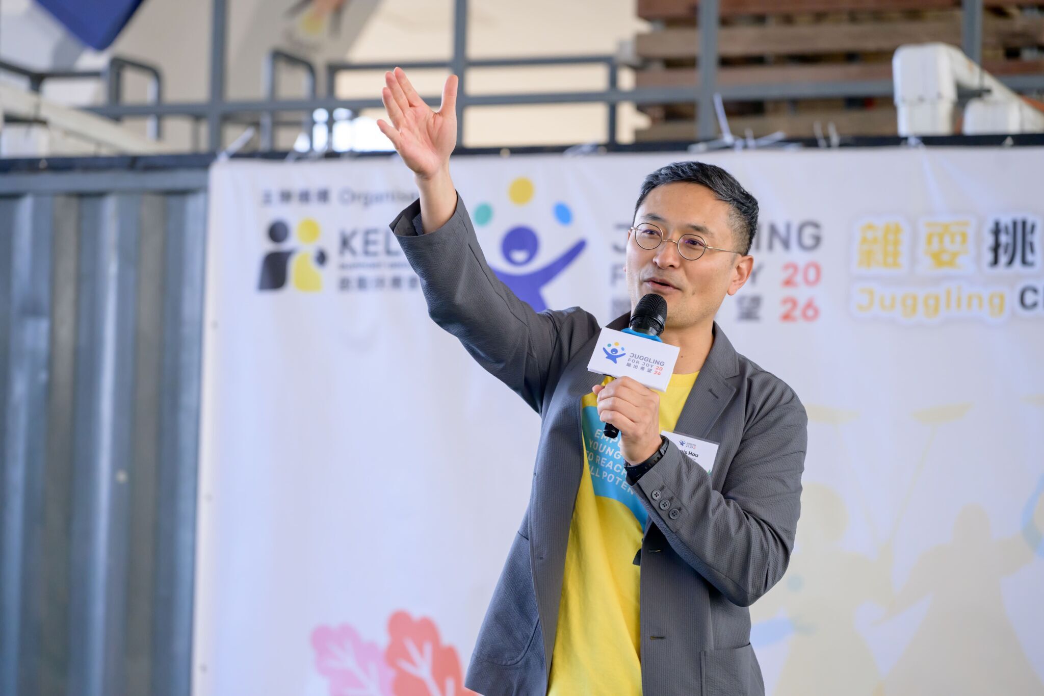 活動專業評審之一的吳維哲 (哲Sir) 為啟動禮嘉賓展示雜耍技巧。